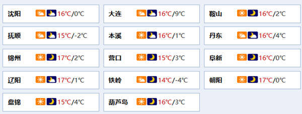 今天,辽宁大部的气温将明显回升;明后两天,受冷空气影响,大部地区会迎来显著降温。辽宁气象台预计,今天白天到夜间,全省晴转多云,最高气温14℃到17℃;最低气温大连南部地区5℃到9℃,沈阳、抚顺、阜新、铁岭、朝阳地区和沈抚示范区零下5℃到零下1℃,其他地区0℃到4℃。